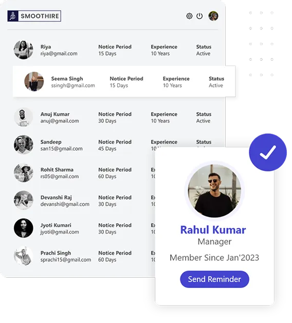 Smoothire recruitment software allows you to access a vast and extensive candidate database from a centralized location while enabling you to manage your clients effectively. Furthermore, it offers features that empower you to build and operate a personalized candidate and client engagement system to improve hiring efficiency.